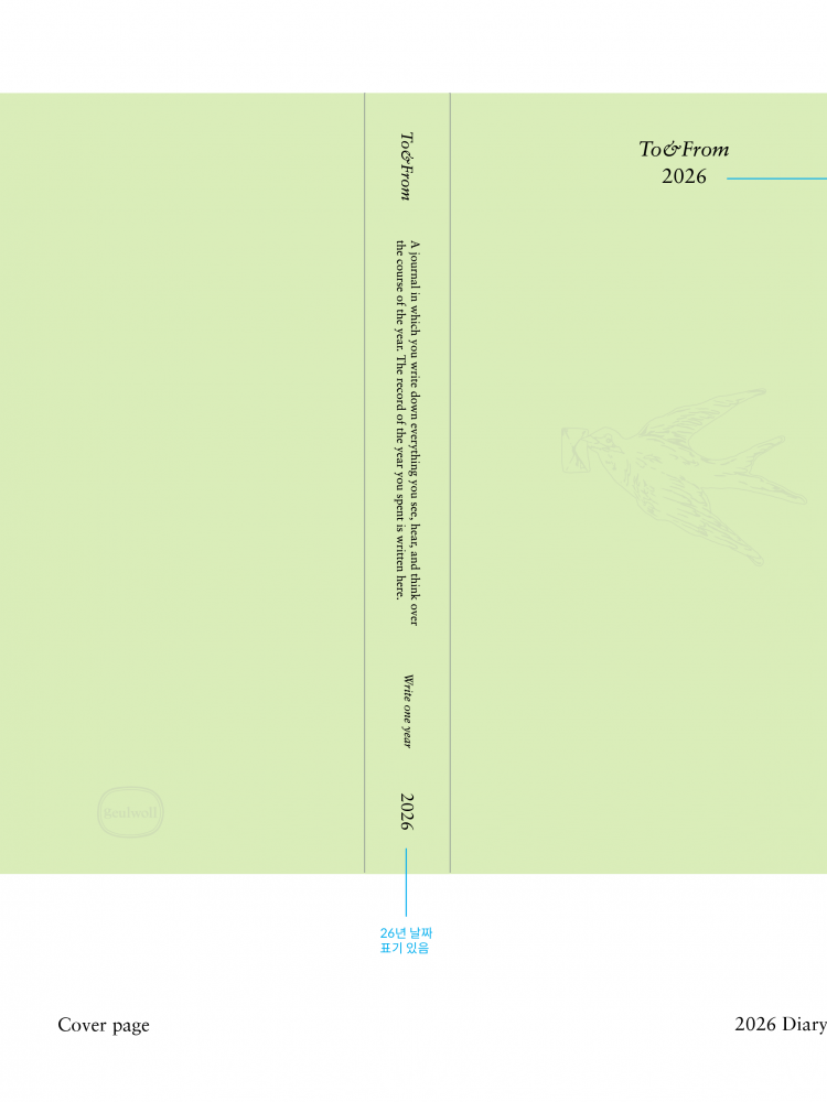 8꼭지로 구성된 𝑇𝑜&𝐹𝑟𝑜𝑚 다이어리는 연간 페이지를 시작으로 열 두 달의 월간, 365일의 일간 페이지, 자유로운 기록을 위한 노트로 나눠져 있으며, 이성과 감성을 채우는 네 꼭지의 서비스 페이지(Paper Sizes,Korea National Holidays & 𝘐𝘯𝘵𝘦𝘳𝘯𝘢𝘵𝘪𝘰𝘯𝘢𝘭 𝘋𝘢𝘺, Sentence & Reference Natation, 24 Solar terms)가 포함돼 있습니다. 사무와 일상의 구분 없이 주관적인 용도에 따라 한 해의 기록을 완성할 수 있습니다. 두 사이즈 중에 취사 선택이 가능합니다.