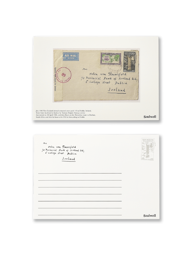 이미 다른 외국으로 보내진 우편 봉투를 엽서에 담았습니다. 봉투와 우표,